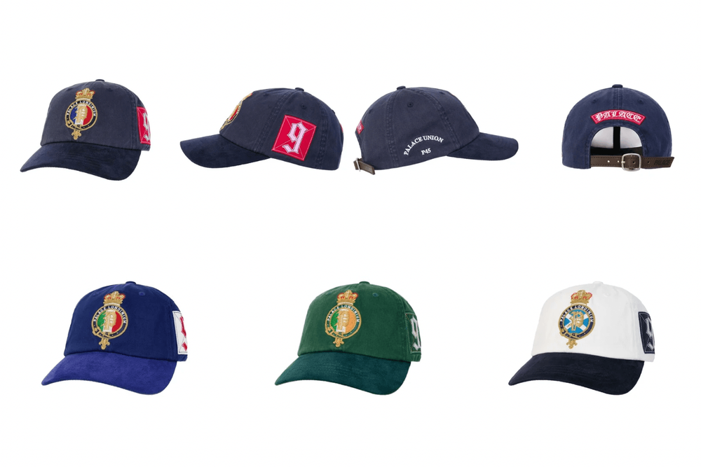 Conversely, Palace literally tips its cap to European countries the brand is yet to bless with a retail presence on the flag-bearing selection of Union 6-panel caps, which respectively honour Ireland, France, Italy, and Scotland.