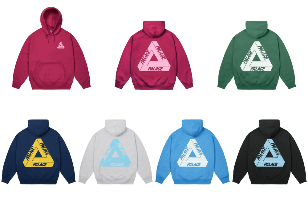 This week’s drop closes out with six new colours of the staple Palace Tri-Ferg hoodie.