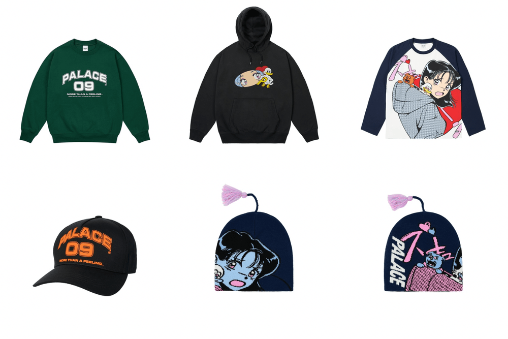 Graphic-focused designs still play an important role in Palace’s latest droplist, as the brand reinforces its seasonal slogan of “More Than a Feeling” on crewneck Sweatshirts and 5-Panel Snapback Caps, while nodding to the cartoonish chaos of Japanese Anime on the Rear View Raglan tees, Beanies and Hoods.