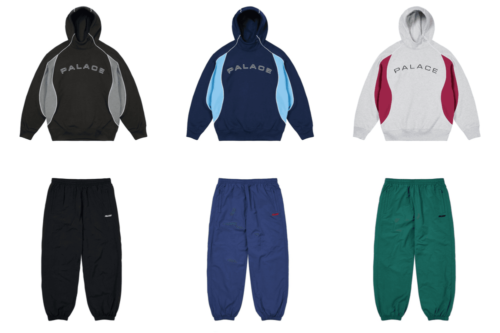 Still within the realms of functionality, Palace has prepared Thermal Insulated Shirts, “Palasonic” Trail Runner tops, Shell Joggers, and Skyline Hooded Sweatshirts.