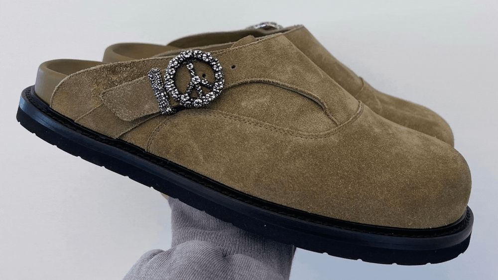 Further exploration of streetwear zeitgeist can be seen on the feet of Dior’s models. The mule game in this collection can only be described as “strong”, whether it's the birkenstock-esque slippers or carved up Tyrolean-style shoes, Dior men’s footwear lead Thibo Denis’ powers of shoe wizardry are on full display.