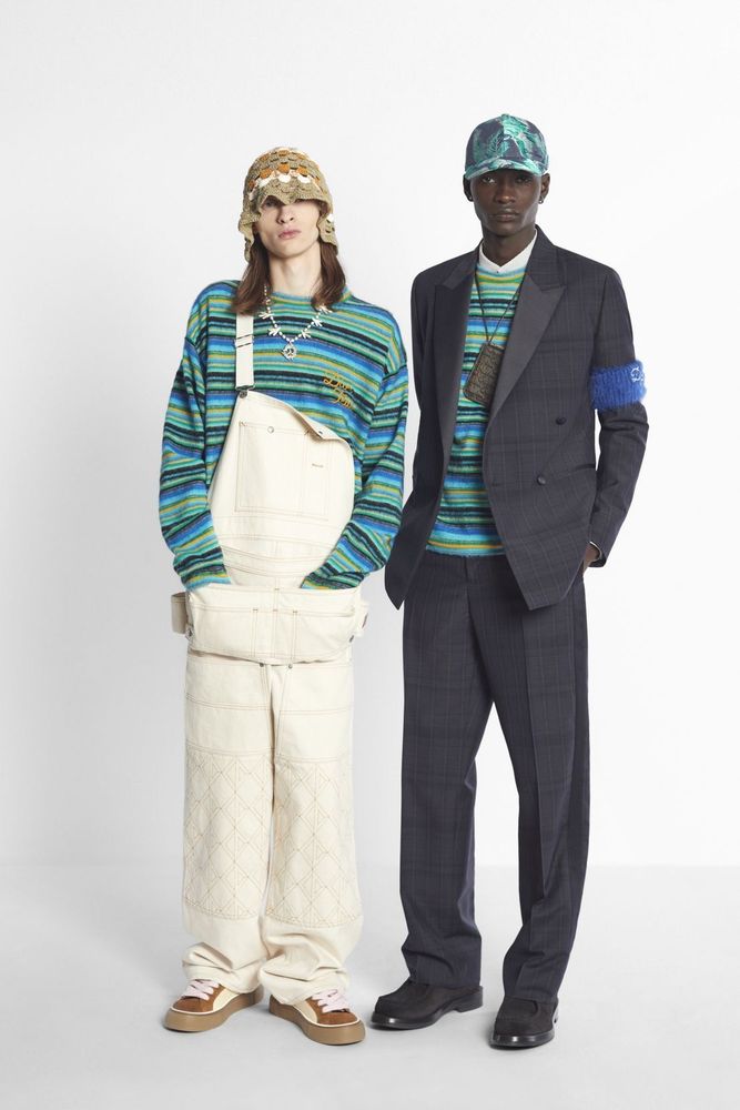 Moving up a category, the amalgamated "Dior Tears" logo features on some bold tees, smartened up by the accompaniment of aberrant knits. Some apply a varsity logo, where others let their pure, haute construction shine.