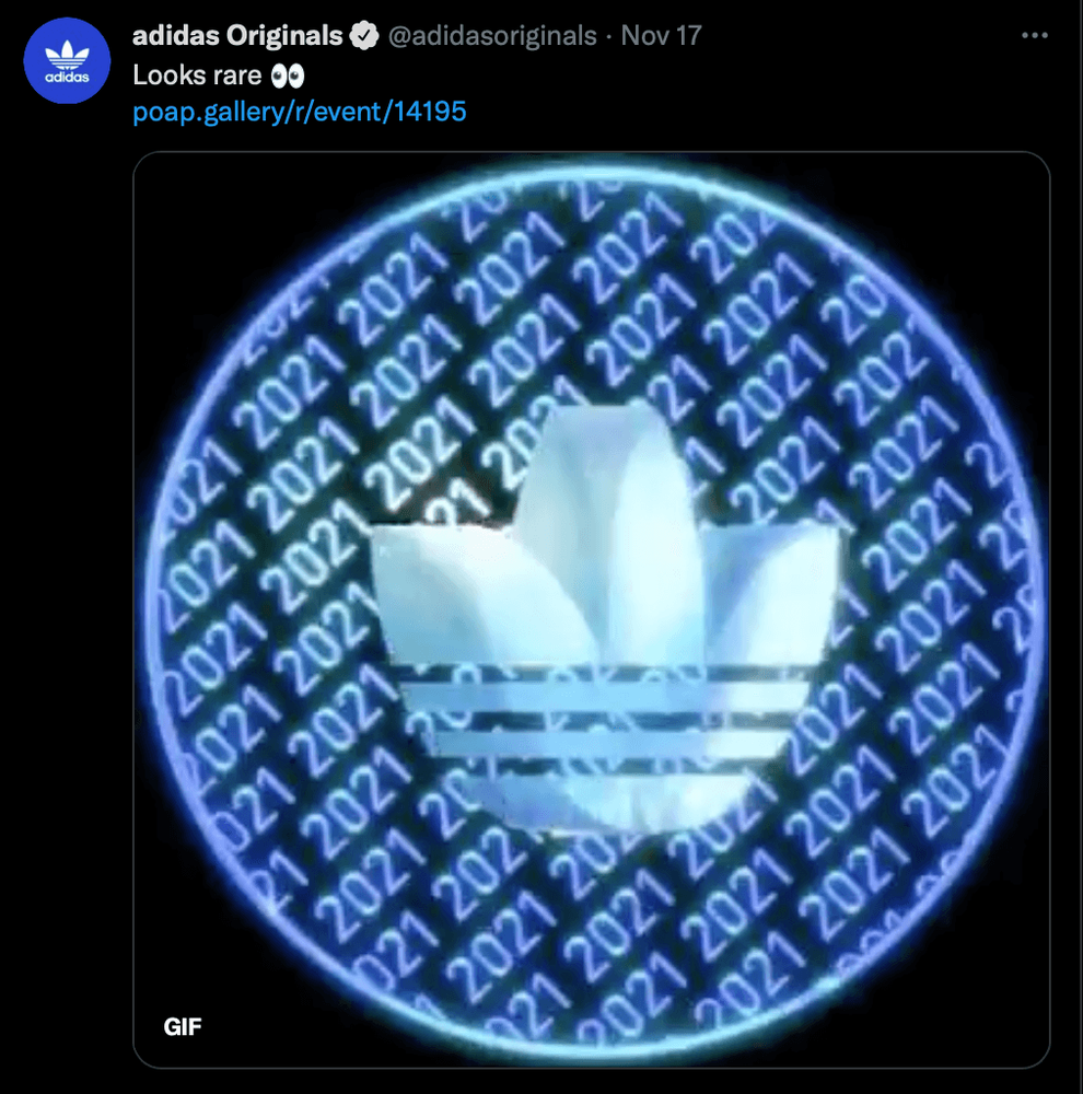 First, they announced the launch of a POAP (Proof of Attendance Protocol) system for the Adidas Confirmed app in which a select few users were offered digital tokens as a way of signifying their loyalty to the brand. Again, the details are foggy but, to quote Adidas: