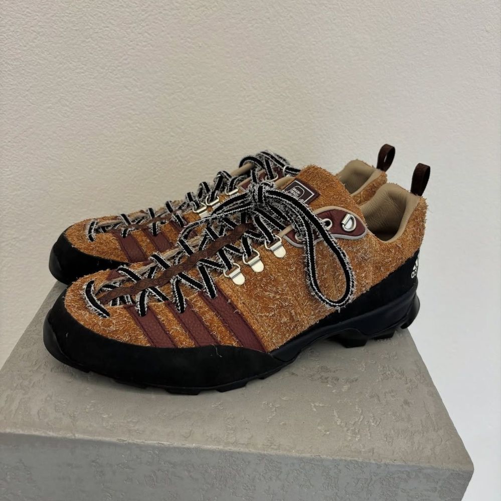 Aside from an inventive pair of hair-on-hide camouflage loafers produced in collaboration with Seoul’s Andersson Bell, and a mysterious approach shoe with hexagonal sidewall detailing, the star of the show in Brain Dead’s SS26 footwear collab lineup is undoubtedly the sugary-brown suede adidas model that takes clear notes from the former’s established appreciation for trail-ready styles.
