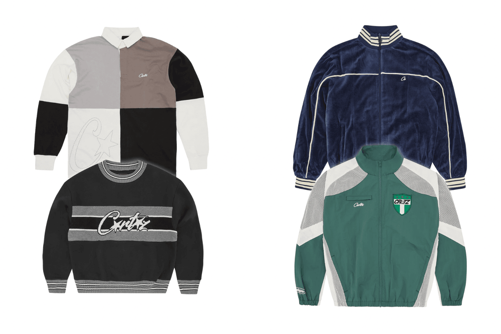 Familiar iconography spills onto tops and sweats, providing re-ups on Corteiz’s lineup of graphic heavy waffle tees, available in men’s and women’s sizing, alongside greyscale sweats, velour tracksuits and a nylon variation done up in Nigeria’s national colours.