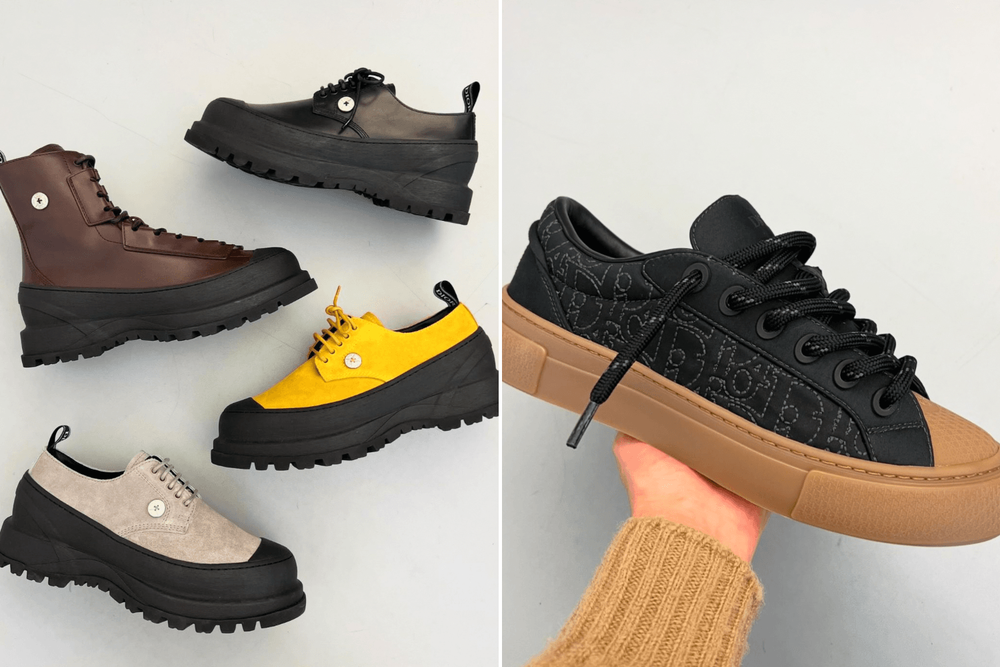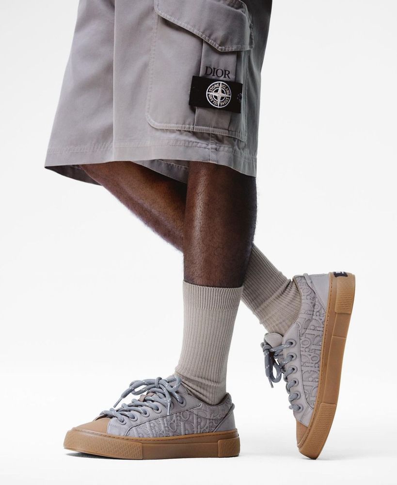 Thanks to Dior’s footwear wiz Thibo Denis, a closer look at the shoes featured in the collection highlight elevated derby styles in suede and leather that boast an extended mudguard atop a commando lug sole. The special edition B33 sneaker takes advantage of Stone Island’s cotton sateen textile, stitched with Dior‘s Oblique pattern along the side panels.