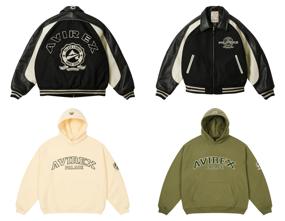 Joining the jackets is a co-branded Palace Avirex Hood sweatshirt.