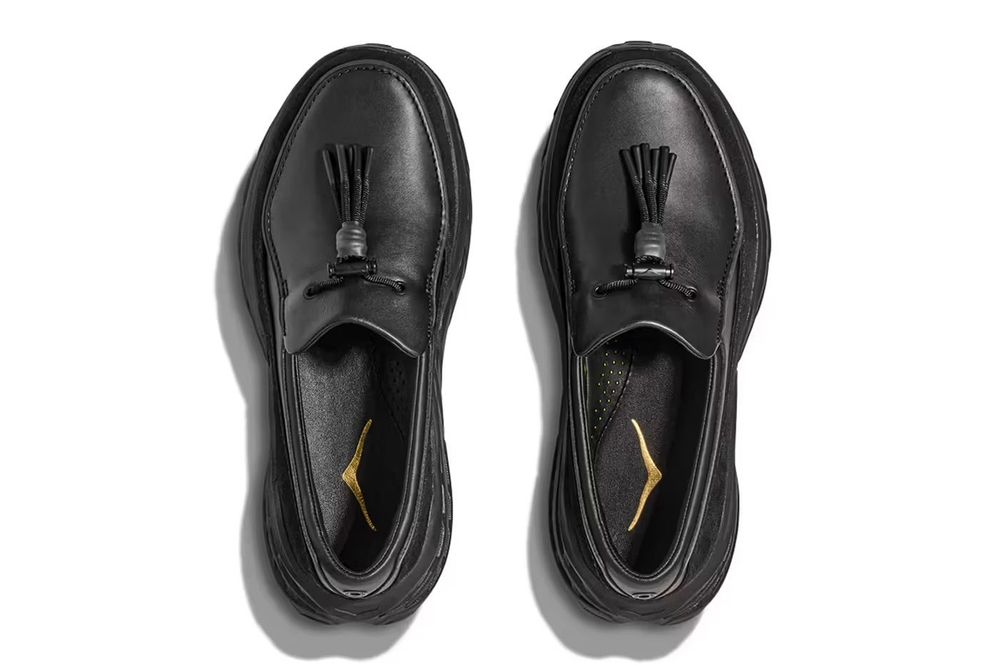 Rather then the traditional beefroll-esque makeup favoured by New Balance, HOKA looks to the timeless tassel loafer for its own interpretation, ingeniously using the central feature to stow a subtle, single-toggle lacing system.