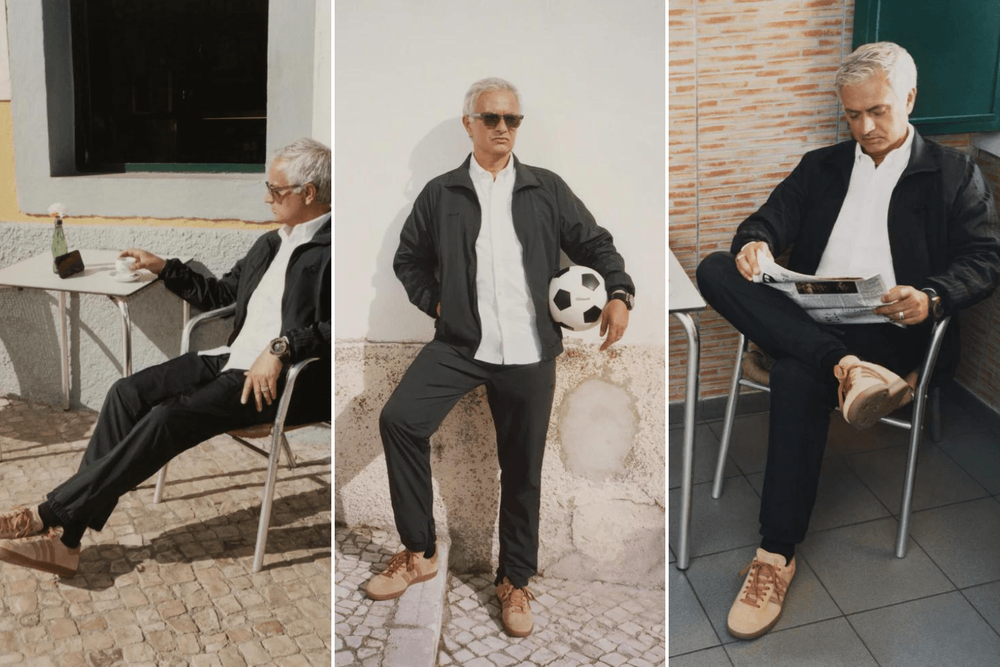 Jjjjound and adidas then linked up in late June to deliver another Samba capsule, this time expanding to “off-court” active gear and accessories modelled by footballing legend Jose Mourinho.