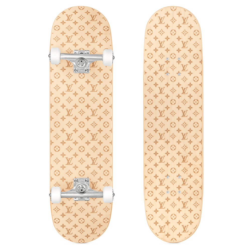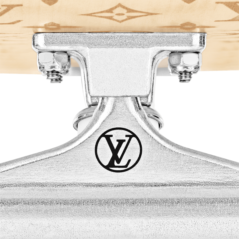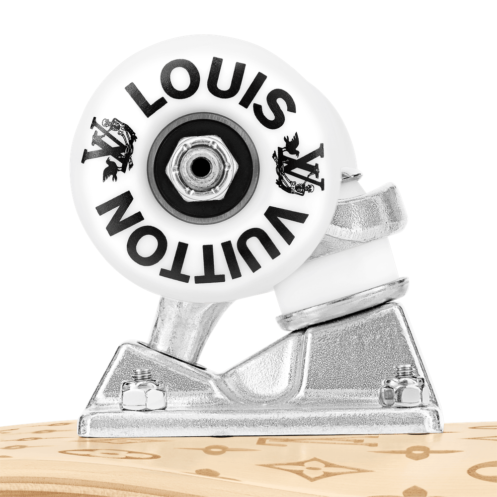 The board also features transparent grip tape in a matching Monogram print plus "Louis Vuitton" engraved wheels and trucks for a super luxe finish.