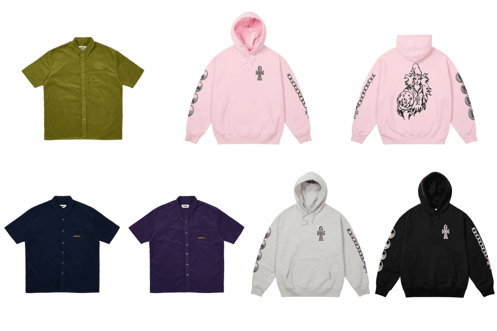 Timed perfectly with the shift in UK weather, Palace reveals short-sleeved corduroy shirts available in washed navy, green and purple, dropping alongside the Wizard graphic hoodie and mesh OM jerseys & shorts that display a spiritualistic spin on piped & panelled active gear.