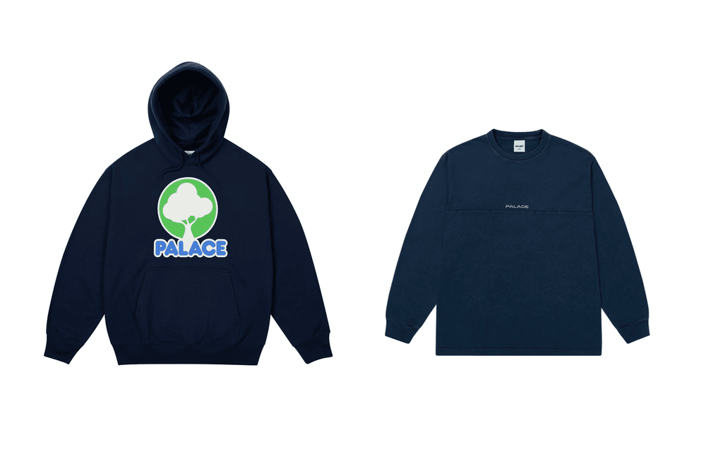 The jerseys are the only pieces to feature Palace’s faux-corporate “PALCO” branding on the front, whereas everything else displays mock badges joined by bold script embroidery on opposite sides.