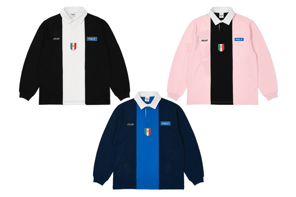 Palace reaches deeper into its sporty “merch” bag with the Paly Rugby shirt, which pays homage to a country that has greatly influenced Palace’s “euro-sport” design language.