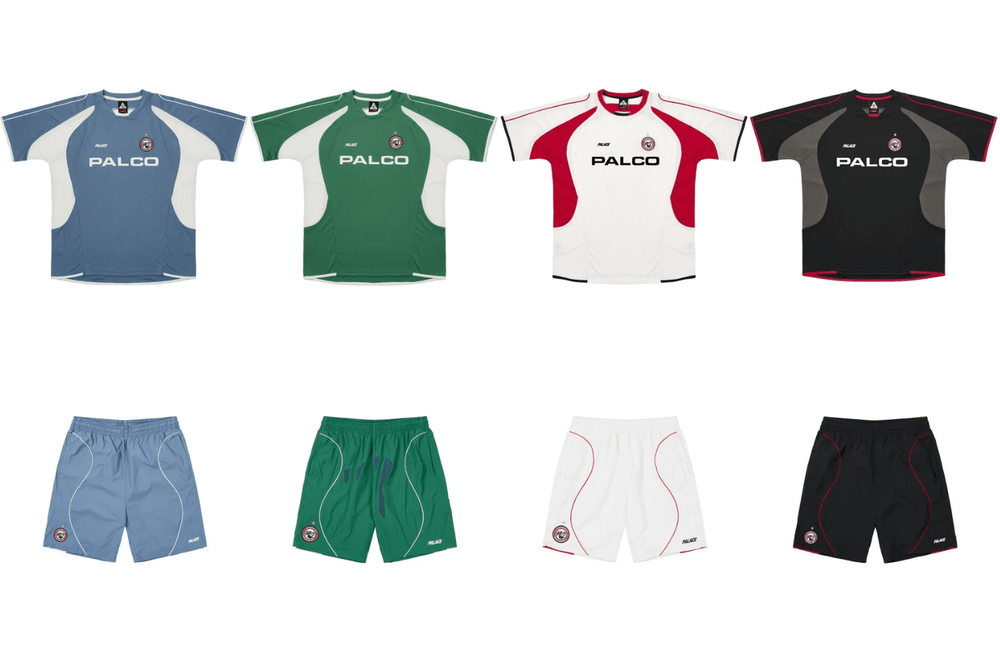 Following the release of a relaxed drop filled with puffed-up mules and matching sweats, Palace adds to its Spring 25 campaign with a new roundup of in-house sportstyle garments, introducing the home, away, third and alternative kits for the imaginary “Palco Pro Team”.