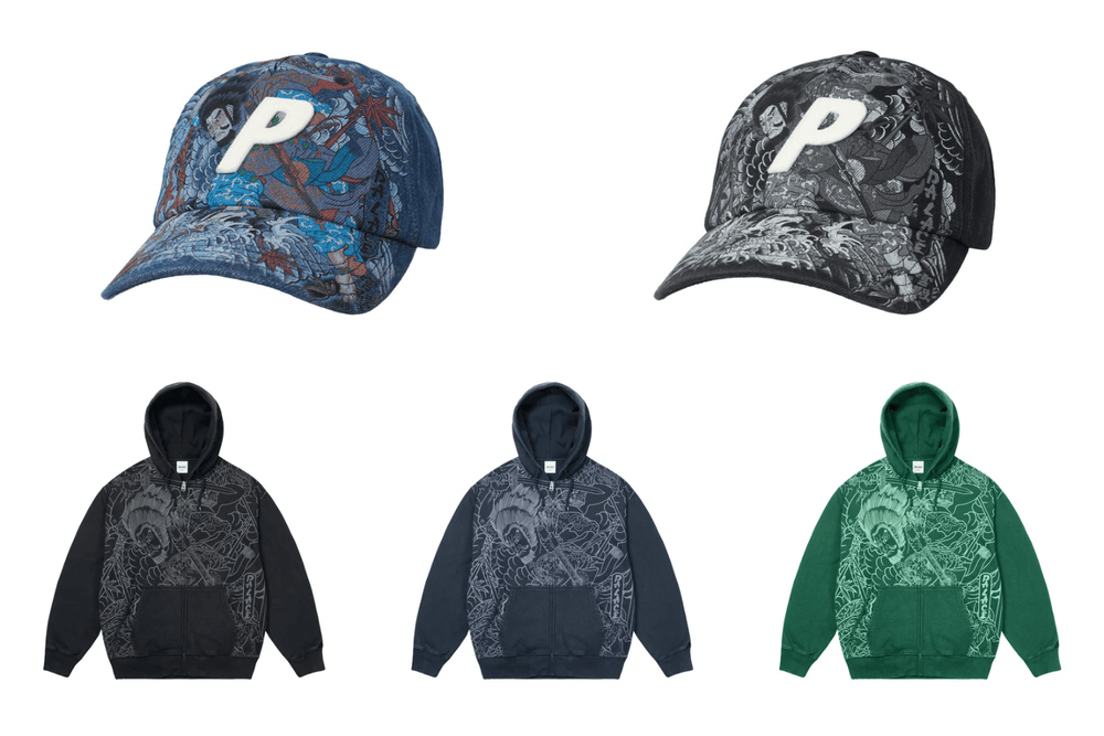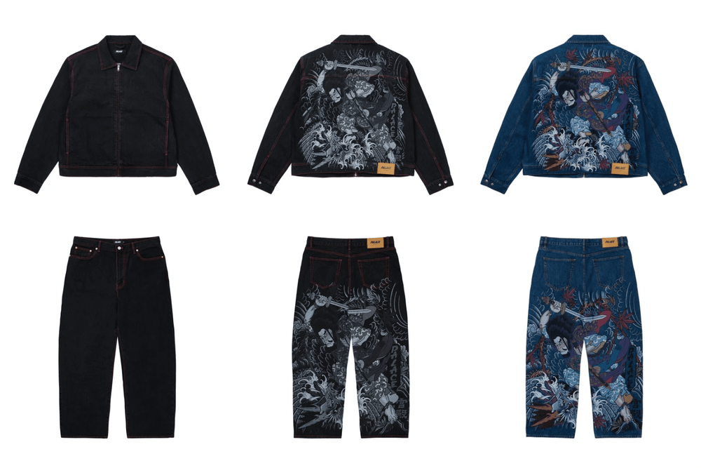 The Susanoo denim set is one of the most hyped mini-capsules from Palace’s Winter 25 season as a whole. Adhering to the “business in the front” formula, the pieces appear to be standard examples of boxy Palace denim, but on the reverse of the zip-up jacket and P90 jeans lies intricate artwork honouring the Japanese God of the sea and the storms — known colloquially as “Susanoo”.