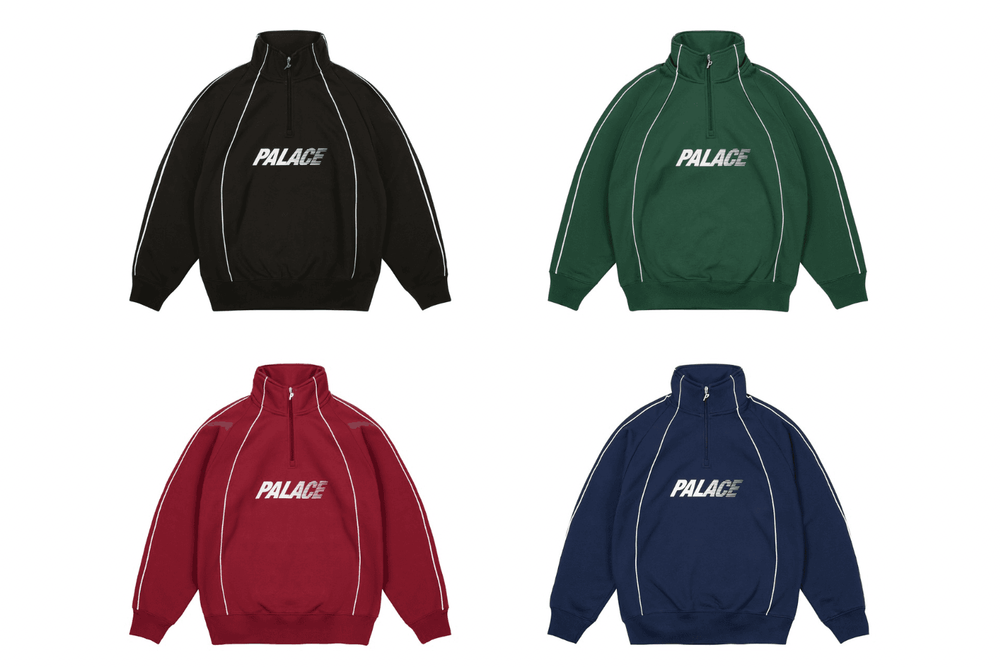 The rest of Palace’s Winter 25 Week 2 droplist is host to a number of brand-appropriate styles, including what could be one of the cleanest iterations of classic Palace sports gear courtesy of the Fast Logo 1/4 zip, which comes in berg, black, navy, and green — each decorated with an “in-motion” Palace wordmark across the centre and white piping throughout.