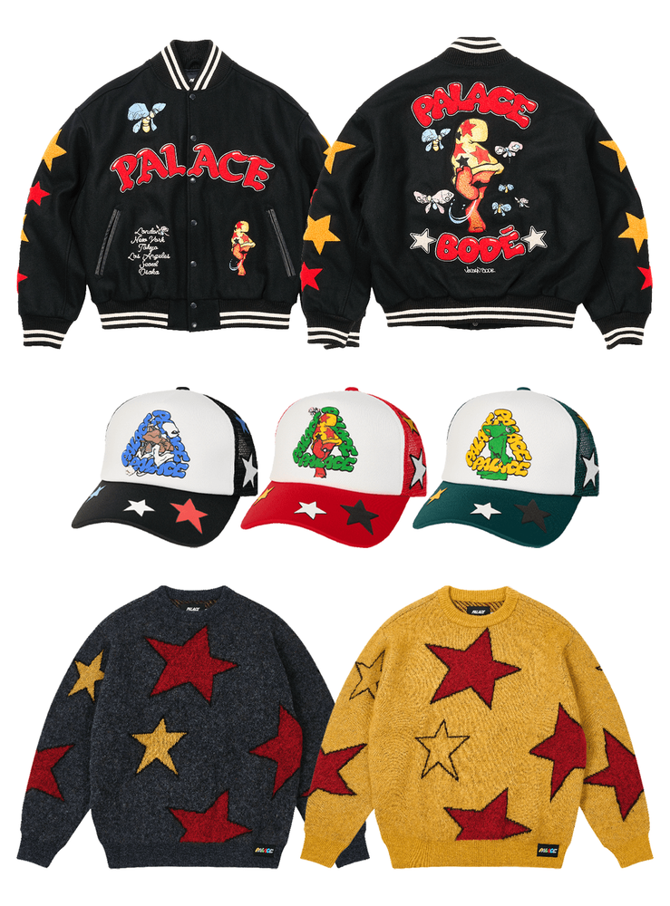 The Palace x Mark Bodē collection releases along with the rest of this week’s Palace drop online and in Palace stores and select retailers from Friday 7th November, Saturday 8th November in Asia.
