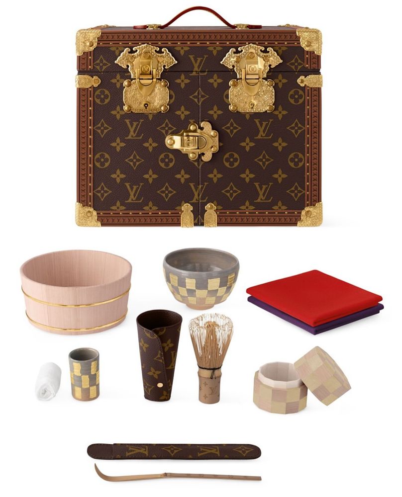 Culinary nods include gyoza-shaped bags and a special edition LV Trunk equipped with everything needed for a traditional Japanese matcha tea ceremony, all encased in an LV monogram-print leather body adorned with ornate gilt hardware.