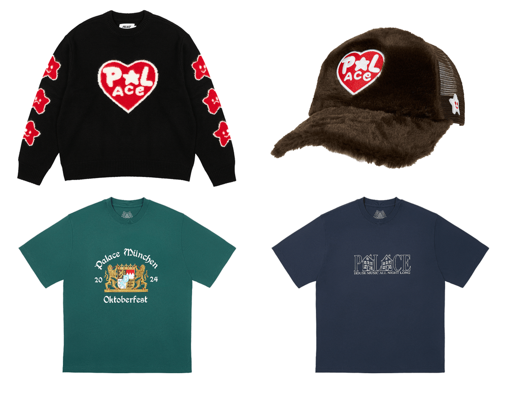The Cosy Knit and Palace Club Trucker recall familiar 90s fuzzy friends with their heart imagery and fluffy textures, where the Oktoberfest graphic tee lands just in time for the annual celebration, joined by the House t-shirt that honours fans of the vibey music subculture.