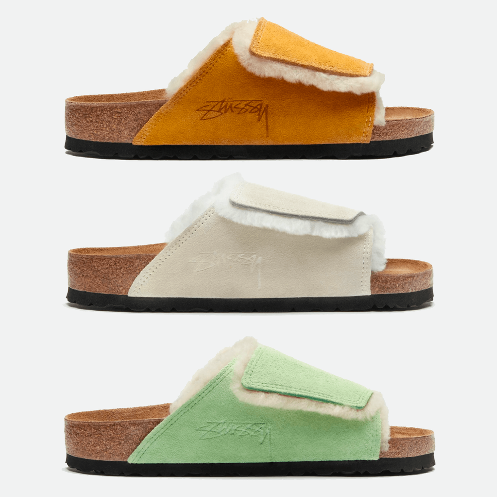 After collaborating on a Boston clog in 2021, Stussy have revealed a brand new collaboration with classic footwear brand Birkenstock, with the fleece-edged "Solana" shoe dropping this week.