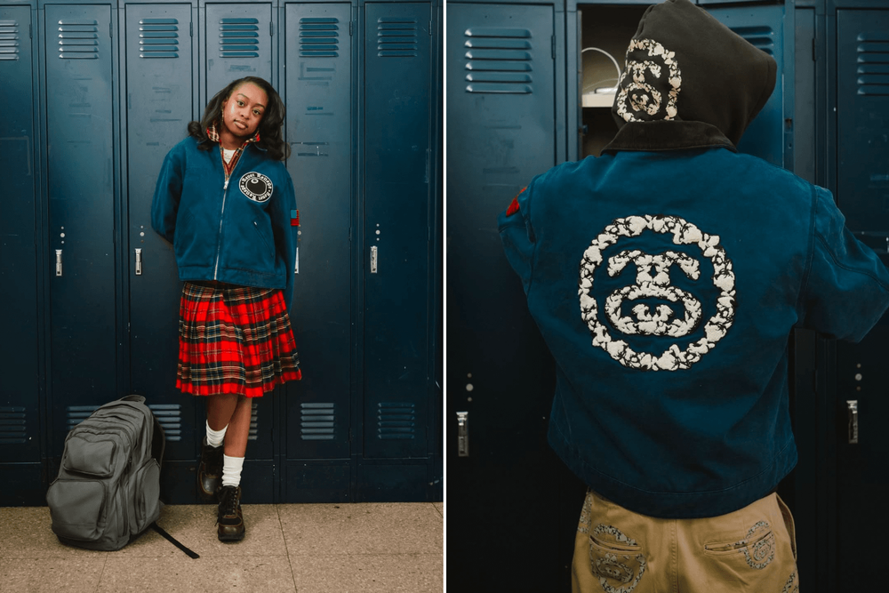 Running with the subverted school uniform theme that has real world applications, especially in America where most students are free to wear what they want, Stüssy & Denim Tears have created a 17-piece collection filled with blazers, flat-front chinos and other contemporary prep staples bearing characteristic collab motifs such as the SS-linked cotton wreath logo and Denim Tears’ Pan African-American flag.