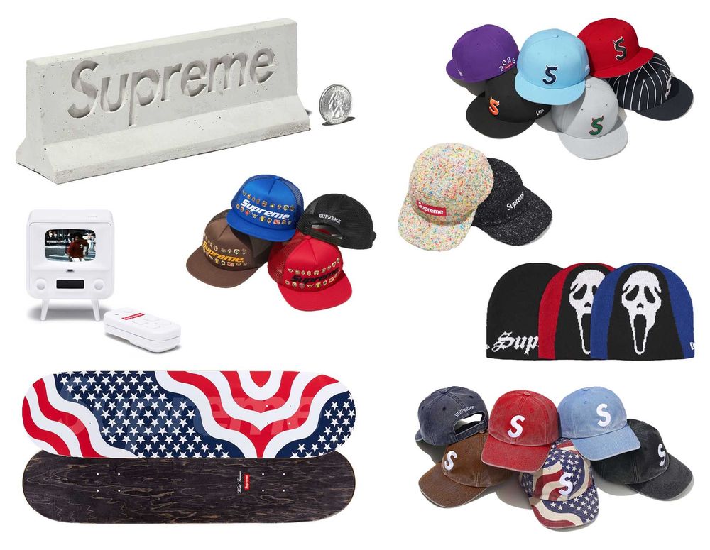 Further highlights from the week's release include the convertible Zip-Off Sleeve Reflective Stripe Jacket - with the ability to transform into a handy vest - plus accessories such as a Tiny Tv 2 set and a Supreme x Mini Materials 1:12 Scale Jersey Barrier for nostalgic skate fans.