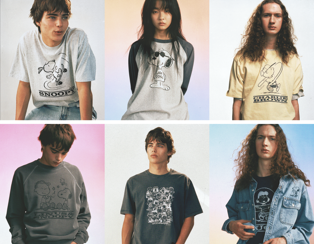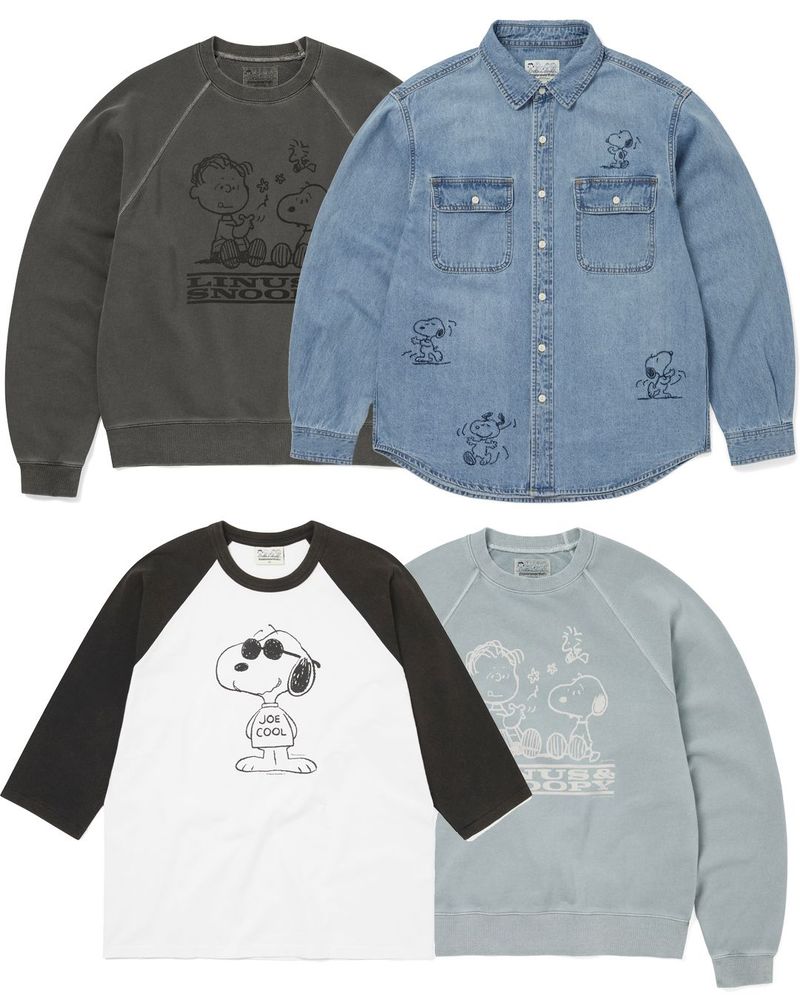 Standouts from the collection include a stone-washed denim shirt with embroidered Snoopy motif and a 340gsm cotton French Terry zip hooded sweatshirt with the whole Peanuts gang on the back.