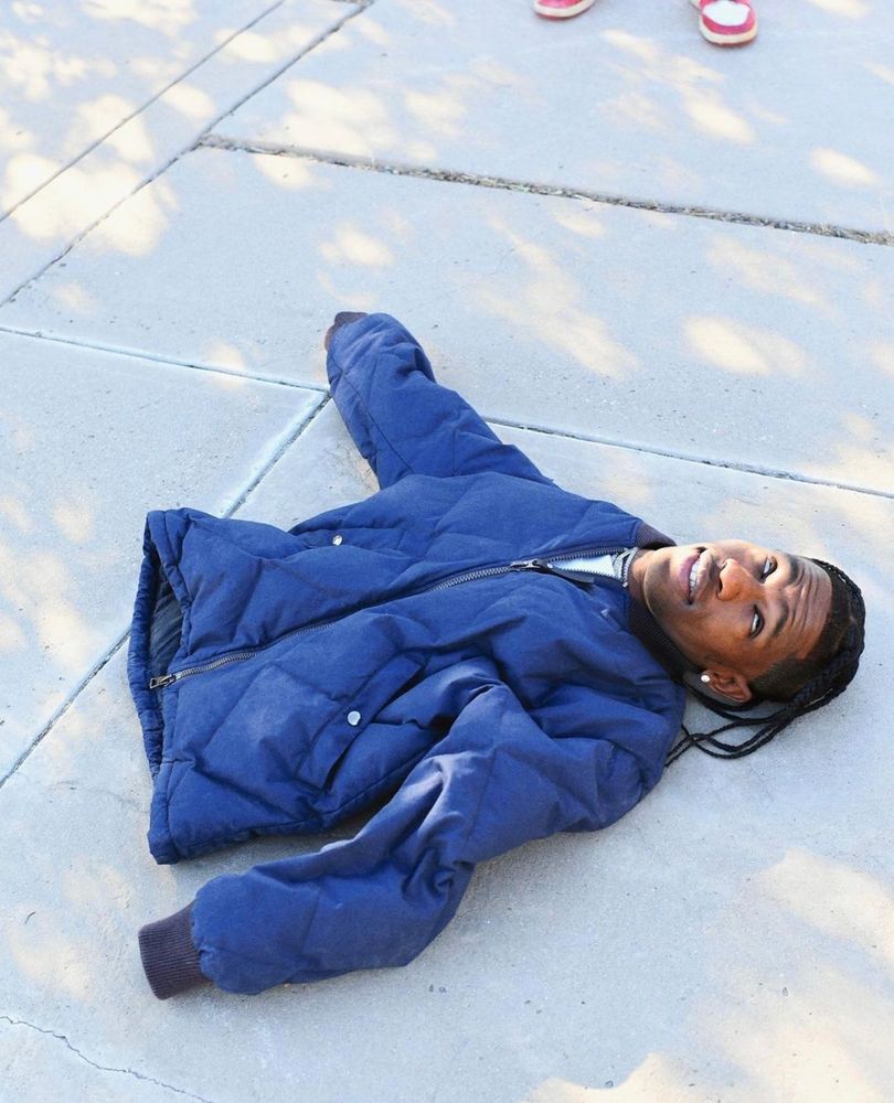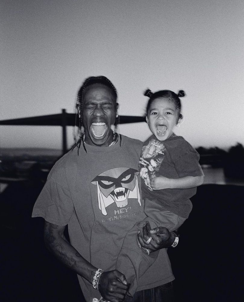 The photo layout - shot and illustrated by photographer and director Spike Jonze - sees Travis in a mix of settings, from home with daughter Stormi to desert-like surroundings dressed in Prada and his own collaborative Nike sneakers.